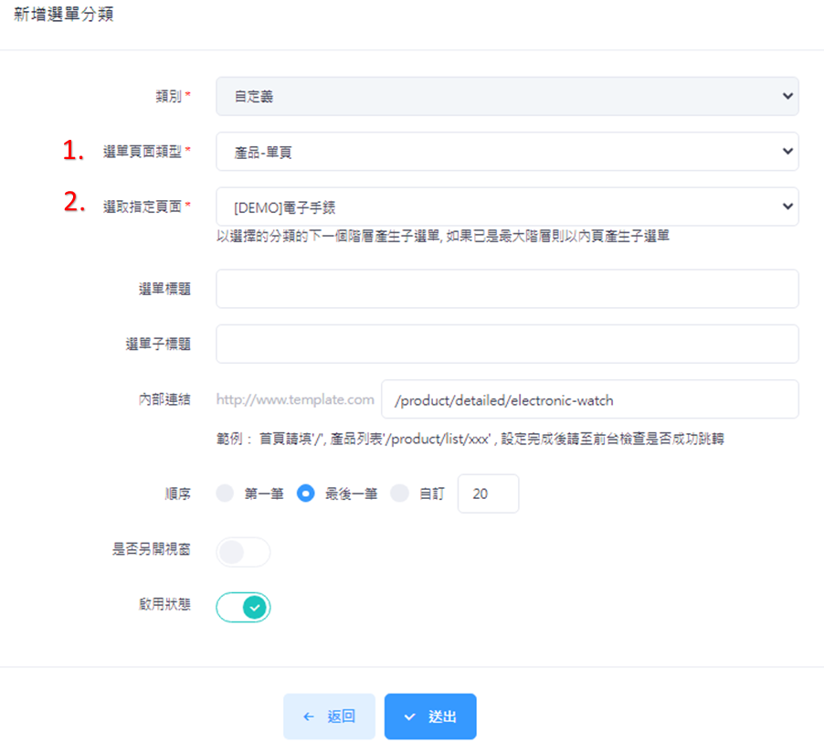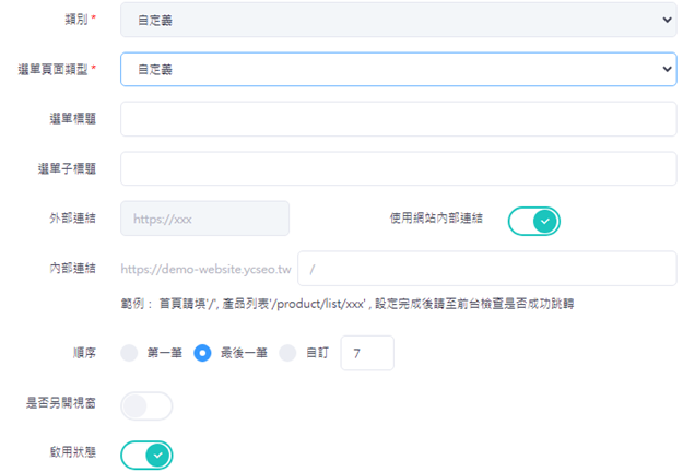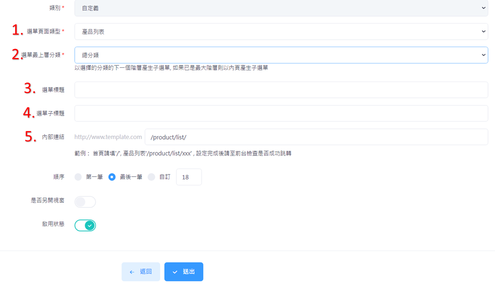 3.選單標題、選單子標題、內部連結 設定與列表相同